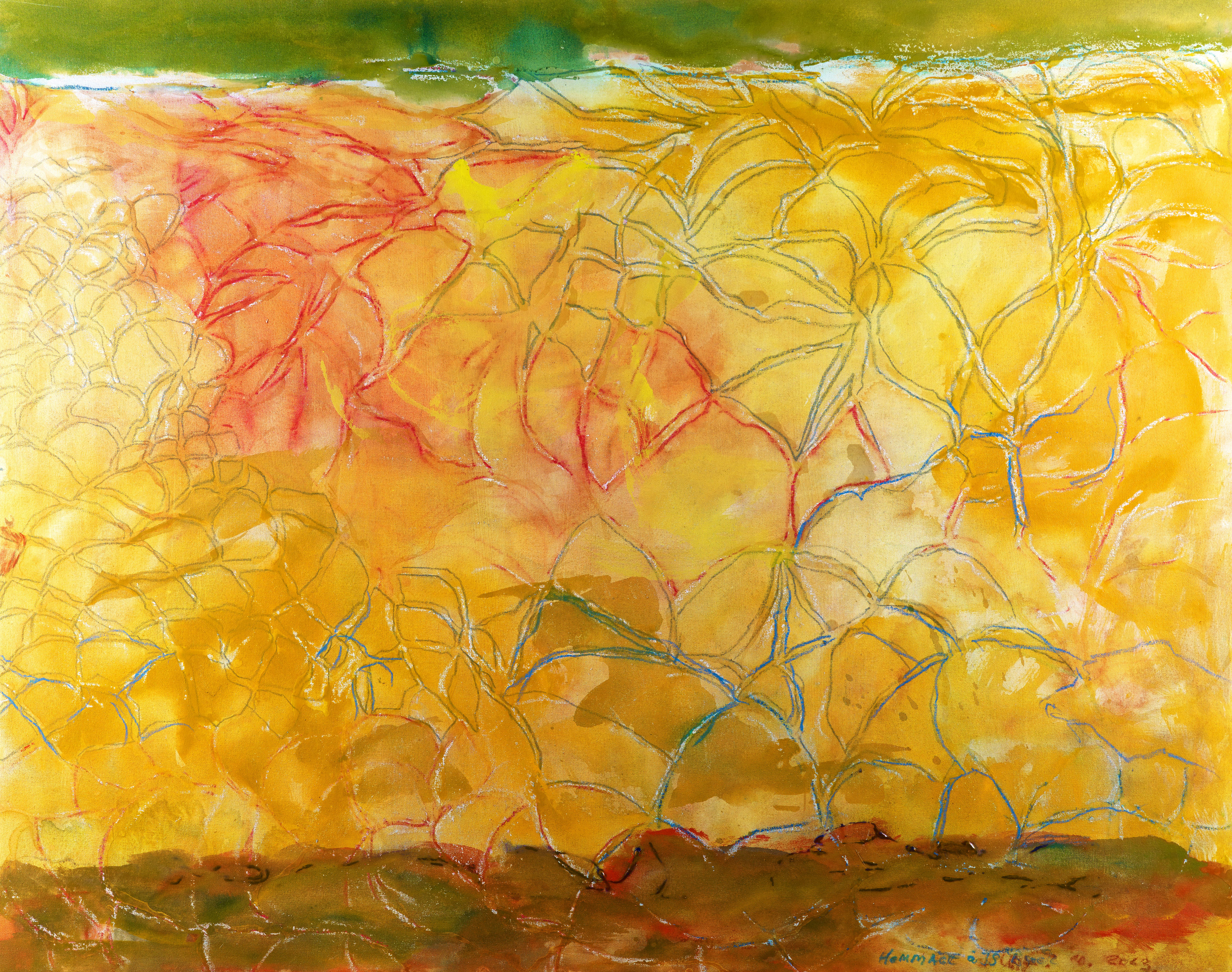 Durch lebenslange Betrachtung der Natur fand Wilhelm Frosting eine einfache Geste, die ihm ermöglicht, alles auszudrücken, was die Natur bewegt. Bewegung schafft Neues, eruptive Kräfte zerstören Bestehendes, während aus dem Verbleibenden neue Fruchtbarkeit entsteht.